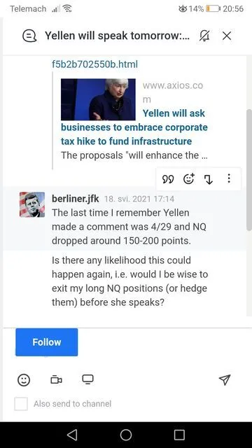 Yellen možda utječe na privremeni pad burze, ne znam kada je točno njezin govor