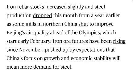 Cijena zeljezne rude takodjer opet raste zbog rasta potraznje iz Kine, valjda zato rastu kejpovi :/