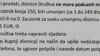 Zanimljivo je da se 250 "starih dionica" pretvara u 1 "novu" dionicu.