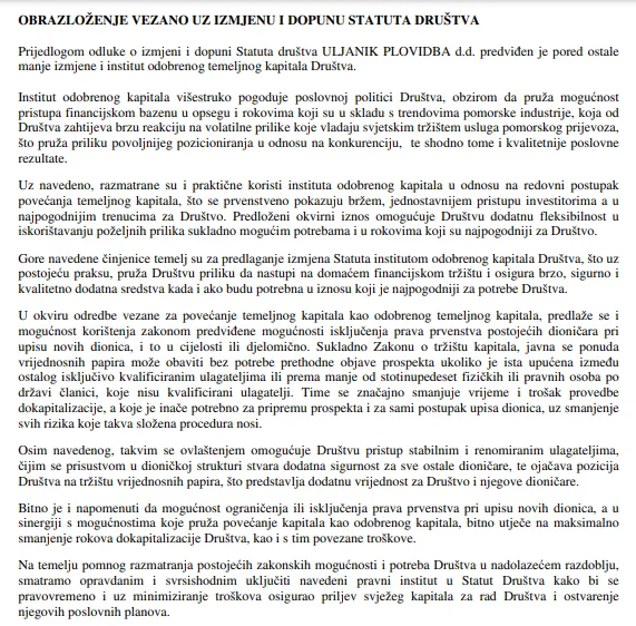 Mali podsjetnik kolega Zlatek............. Dana 08. kolovoza 2017. godine upisana je izmjena Statuta kojom je dana ovlast Upravi da uz suglasnost Nadzornog odbora u razdoblju od najviše 5 godina.... znači do 08. kolovoza 2022. godine.