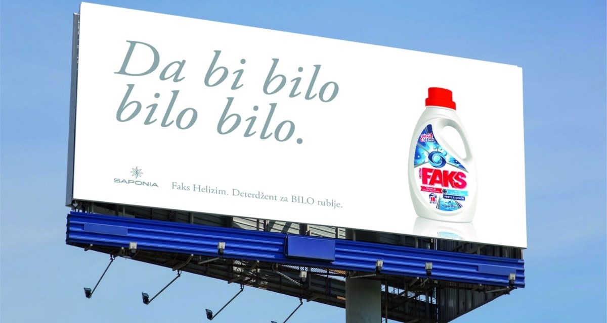 U suradnji sa Saponijom, agencija Bruketa&Žinić&Grey, u Splitu je postavila billboard s porukom: „Da bi bilo bilo bilo“, podsjećajući Splićane da će Faks Helizim bijelo rublje i održati bijelim."