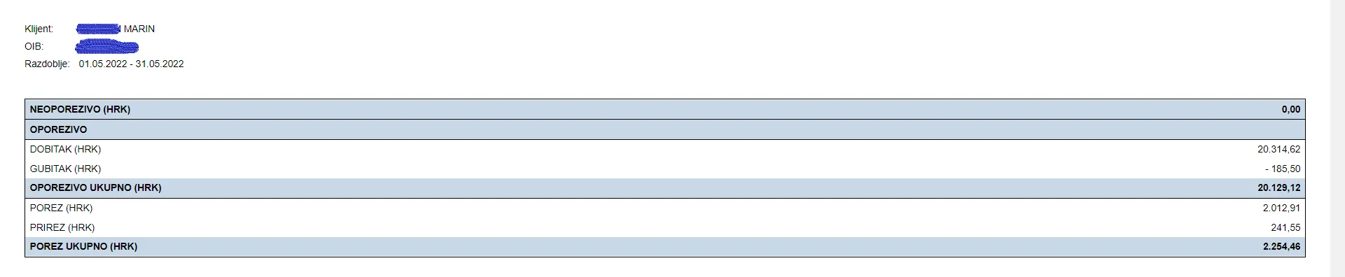 Uđi u stavku "porez" i izaberi od do datum i stisni OK, potom pritisni print i dobiješ obračun...
