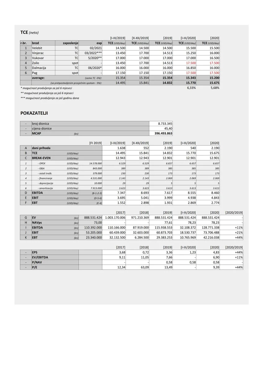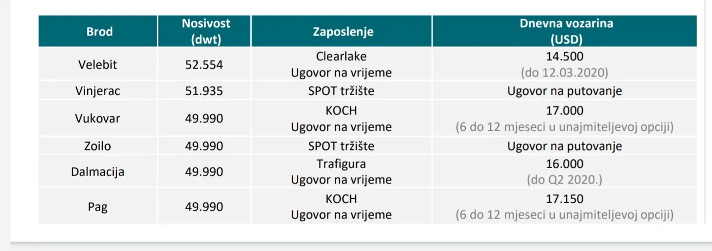 Ne znam da li je baš tako ili su u međuvremenu neki ugovori na vrijeme istekli...no ako je i tako prosjek po brodu će biti preko 16 000 usd dan...što će opet dati oko 10 mil.kn dobiti po kvartalu...što bi značilo da za ovu godinu za TPNG nema zime i da će imati popriličan rast dobiti u odnosu na 2019 god.