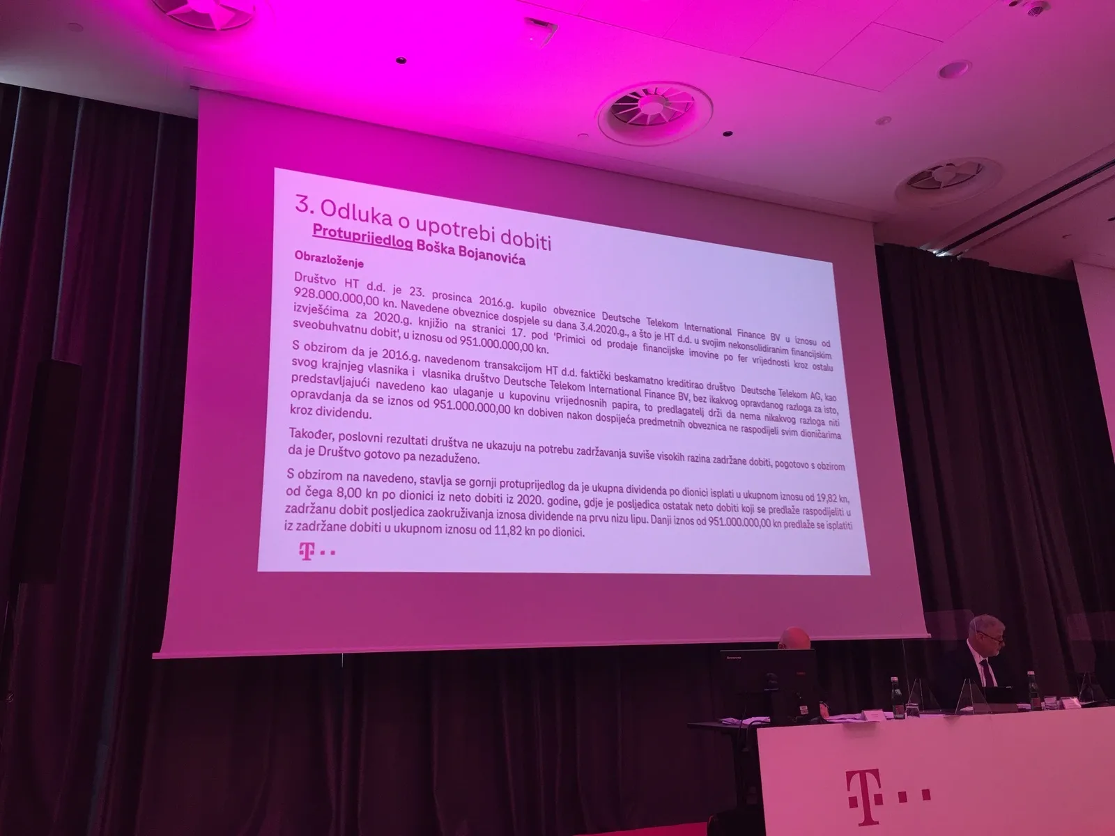 I jedan i drugi protuprijedlozi imaju jednaku snagu i pravno su validni ako se izglasaju i upisu u sudski registar odnosno unesu u zbirku isprava kao zapisnik sa GS. Protuprijedlog iznesen na glavnoj skupštini ne ovisi o dobroj volji predsjedavajućeg nego o glasovima dionicara/udjelnicara prijavljenih na skupštini. Druga je stvar sto nasa dionička društva nisu “public” nego uglavnom imaju prevladavajuće, kontrolne ili apsolutne vlasnike.