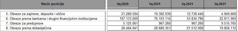 Vezano za ova dokovanja, znao sam da atpl ima min SS 7 brodova koji se trebaju napravit u 2022 tako da mi ova informacija nije iznenadjenje, to je nesto sta svaka kompanija radi i treba uzest u obzir kao normalan dio poslovanja, najveci je problem za kompaniju kada nemate novaca, a treba to napraviti, sreca pa je ova godine dovela do konsolidacije dugova i prihoda pa s te strane za atpl to trenutno ne predstavlja problem, a ocito je i po kretanju refinanciranja dugova i otplatama u zadnjoj godini da se uzimao u obzir cash flow u 2022 godini vidjivo iz kretanja kratkorocnih obveza do 3Q.2021 koji su s pocetka godine od 130mil kn u ovom zadnjem kvartalu svele na 28mil kn za obveze do godinu dana, pretpostavit je da ce u ovom kvartalu jos dodatno se to smanjit pa da ce u 4Q.2021 jednogodisnje obveze po kreditima vjerovatno bit jako niske mozda oko 10mil kn, pa se moze zakljucit da ce sljedeca godina dokovanja bit vjerovatno jedini kapitalni izdatak koji ce vrlo lako bit velicine kolika je i amortizacija kompanije ?.U zadnjem kvartalu vidljivo je povecanje predujma, za tu stavku jedino ne znam da li se odnosi na na predujam za kupoprodaju brodova ili za nabavku BWTS-a