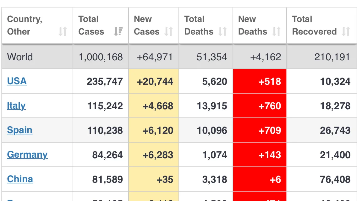 Broj oboljelih je danas, 2. travnja 2020. dostigao prvi milion.