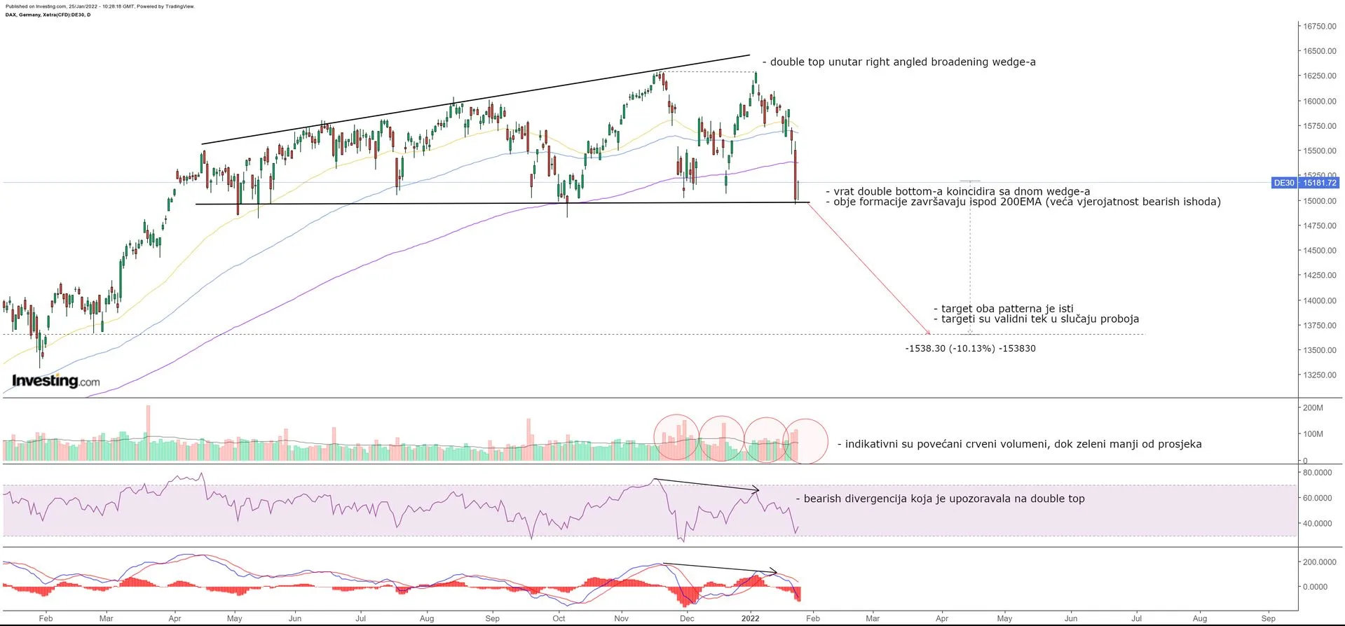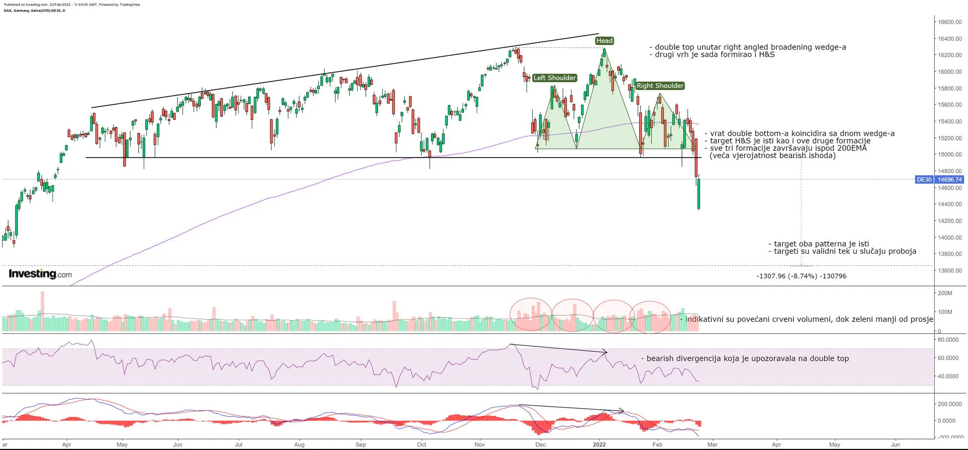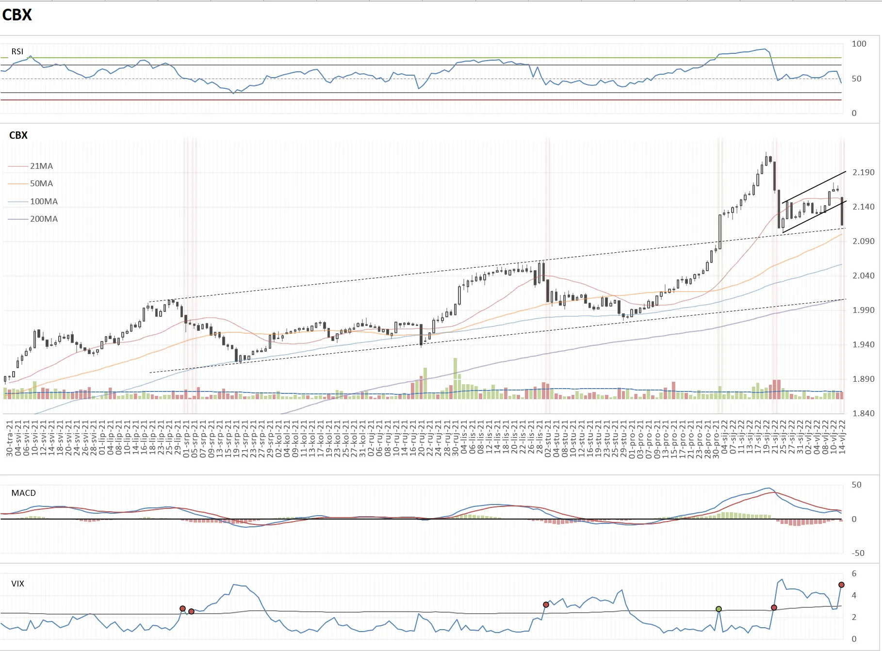 Izgleda da se bear flag pozitivno raspetljava (ovo "povoljno" je uvjetno rečeno - pozitivno glede TA, ali nepovoljno jer je crvenilo, pogotovo ako nas je zateklo nespremne). Dan doduše nije gotov, ali za sada taj proboj izgleda vrlo uvjerljivo. Target bear flaga je oko 2050-2070. VIX opet divlja. Valja ovo držati na oku.