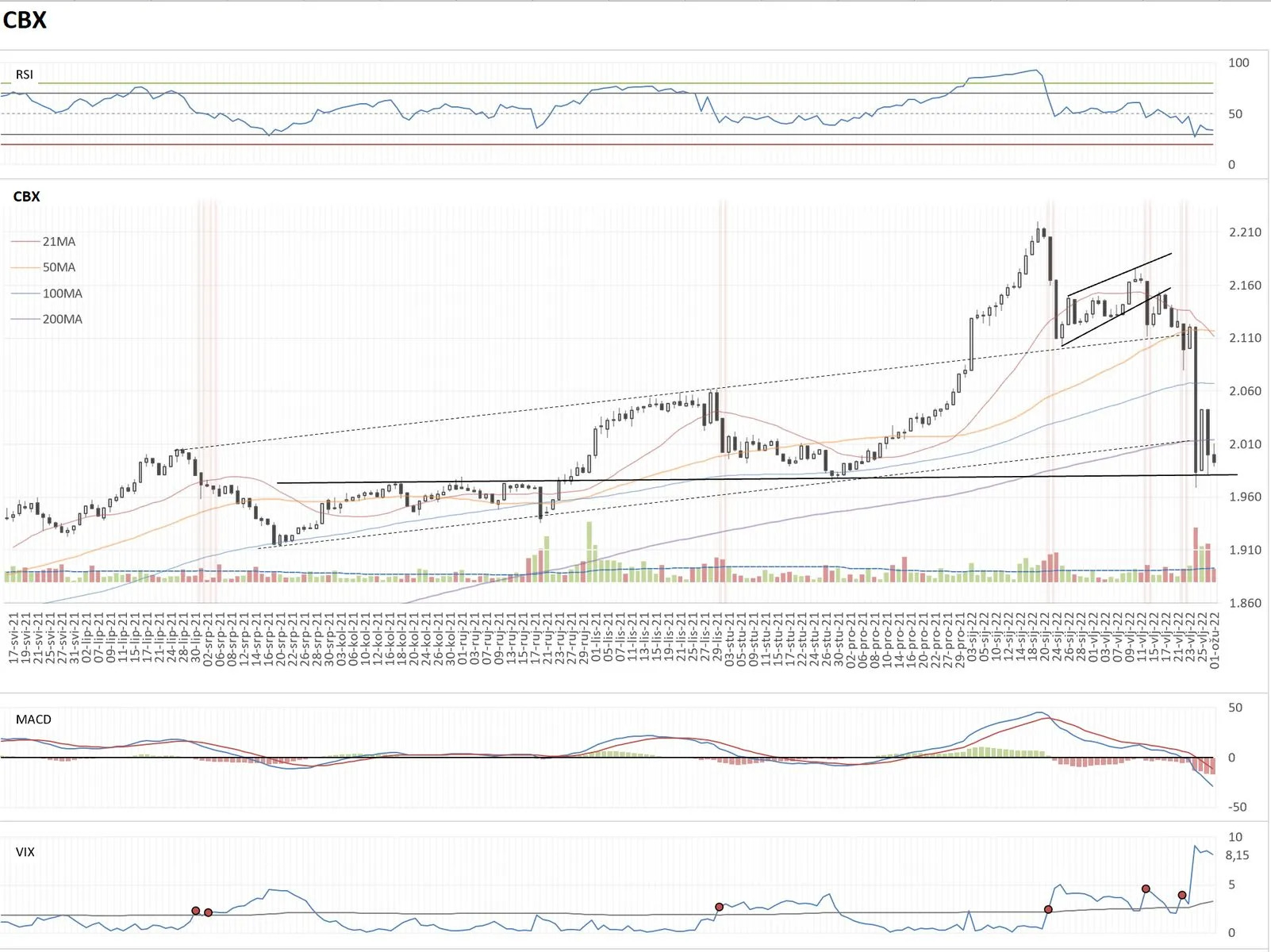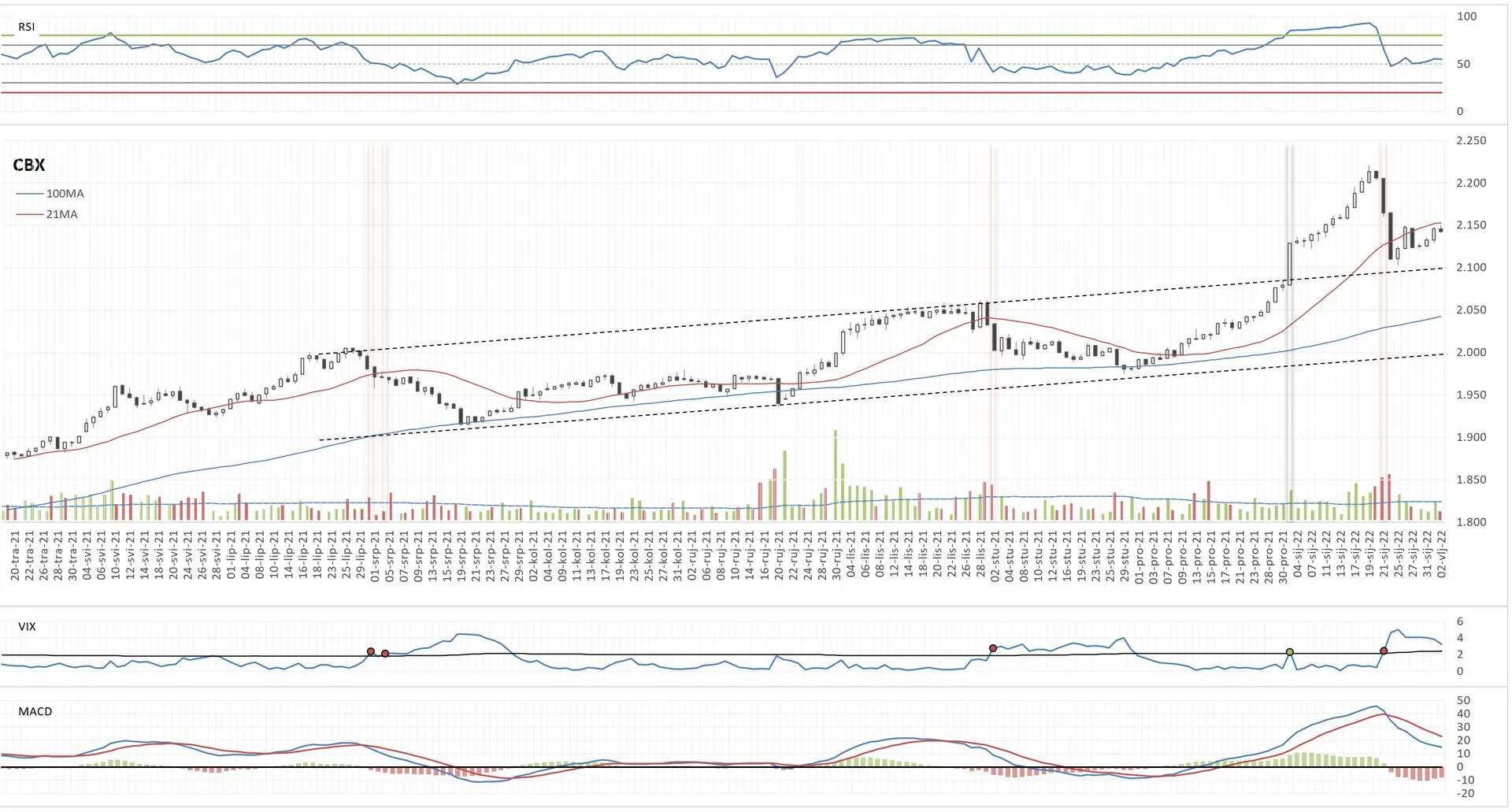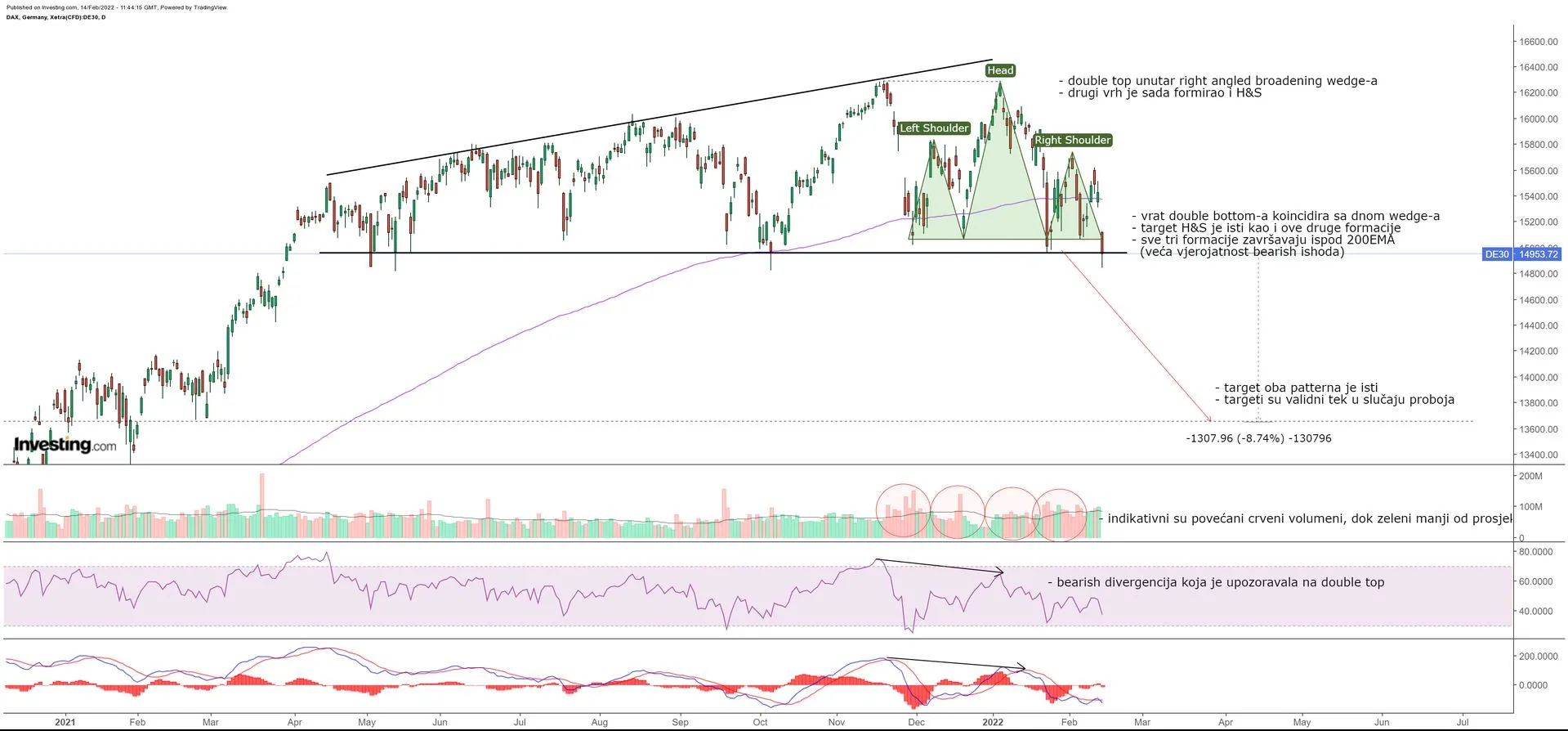 Izgleda da se bear flag pozitivno raspetljava (ovo "povoljno" je uvjetno rečeno - pozitivno glede TA, ali nepovoljno jer je crvenilo, pogotovo ako nas je zateklo nespremne). Dan doduše nije gotov, ali za sada taj proboj izgleda vrlo uvjerljivo. Target bear flaga je oko 2050-2070. VIX opet divlja. Valja ovo držati na oku.