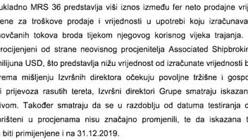Naime, od ovih 12 brodova 10 je u vlasništvu, 2 u bareboat charteru. Revizorsko izvješće i podaci o vrijednosti brodova se odnose za kraj 2019. i isti su korišteni u ovoj korigiranoj tablici. P/NAV je ostao isti, 0,79.