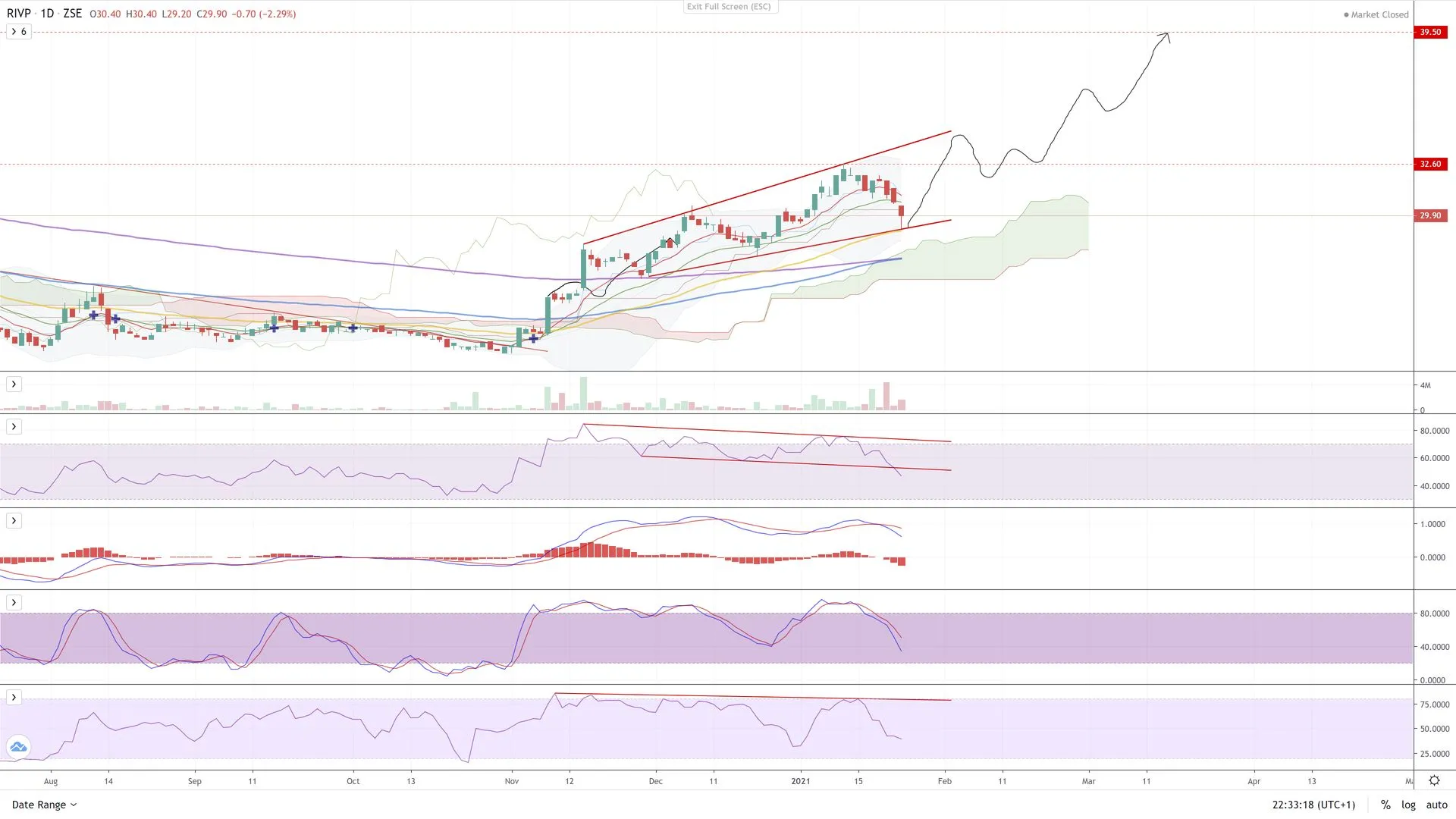 Zanimljiv pattern na RIVP. Vjernici u ovogodišnji turizam bi sada trebali kupovati, dobra je prilika. Ako bismo na trenutak zaboravili na koronu, rekao bih da će cijena ići putanjom nacrtanom na grafu. Ja koronu i nepoznanice povezane sa time ipak ne mogu maknuti iz glave pa ću ovo još neko vrijeme promatrati sa strane.