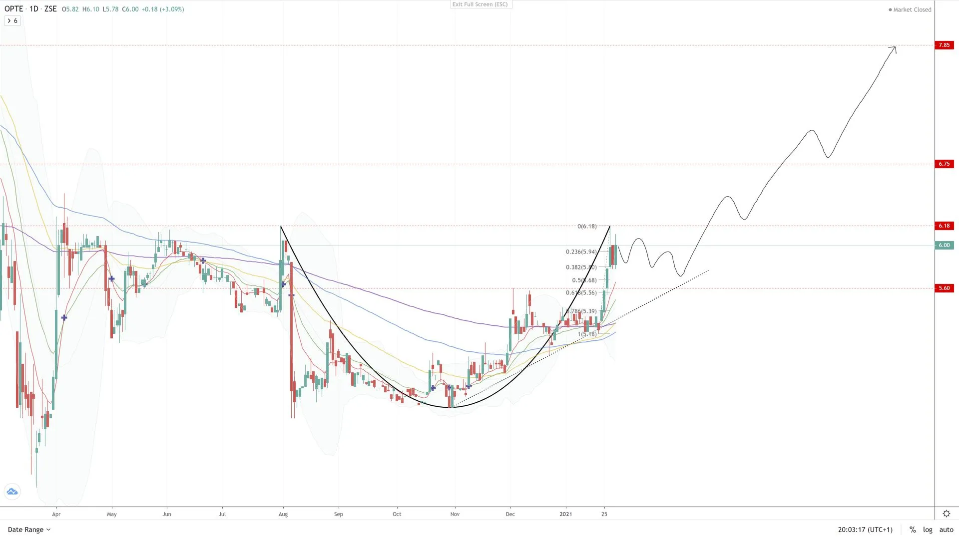 Da li bi se i na ovom tjednom grafu OPTE mogao iščitati potencijalno isti obrazac u razvoju, naravno ukoliko dođe do proboja iznad 6kn sa targetom oko 7,5kn?